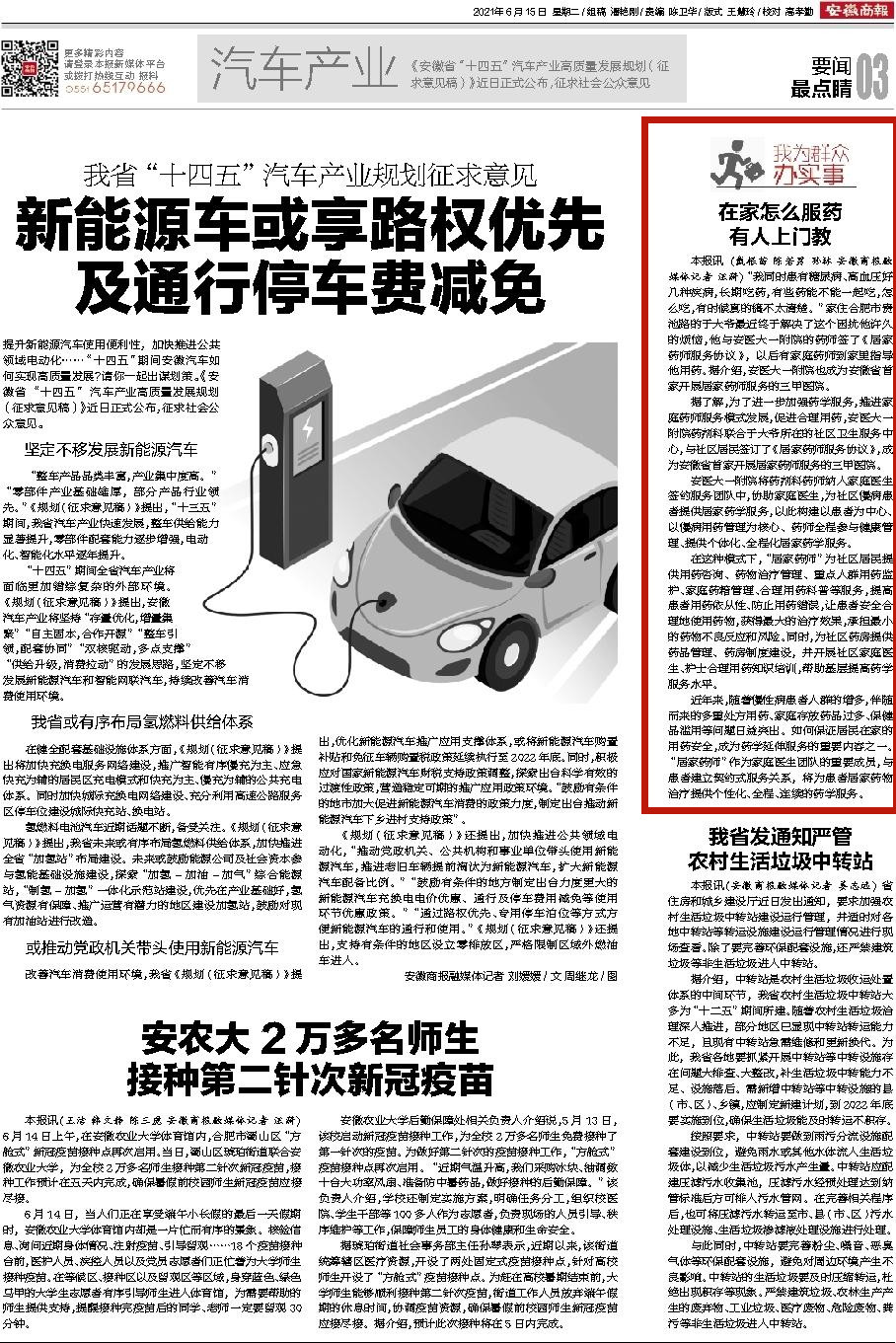 据了解,为了进一步加强药学服务,推进家庭药师服务模式发展,促进合理用药,安医大一附院药剂科联合于大爷所在的社区卫生服务中心,与社区居民签订了《居家药师服务协议》,成为安徽省首家开展居家药师服务的三甲医院。