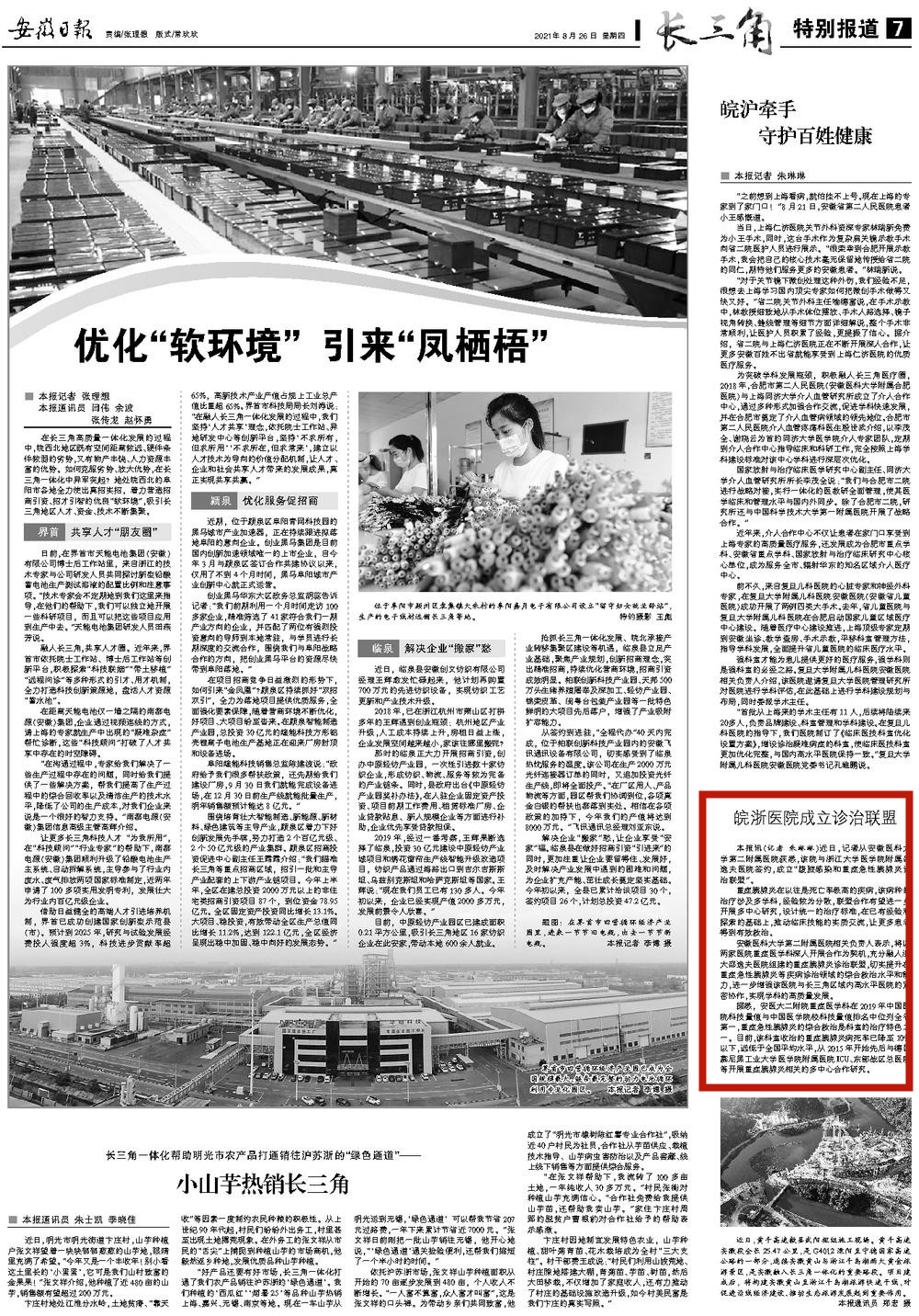 安徽日报、安徽新闻网:皖浙医院成立诊治联盟