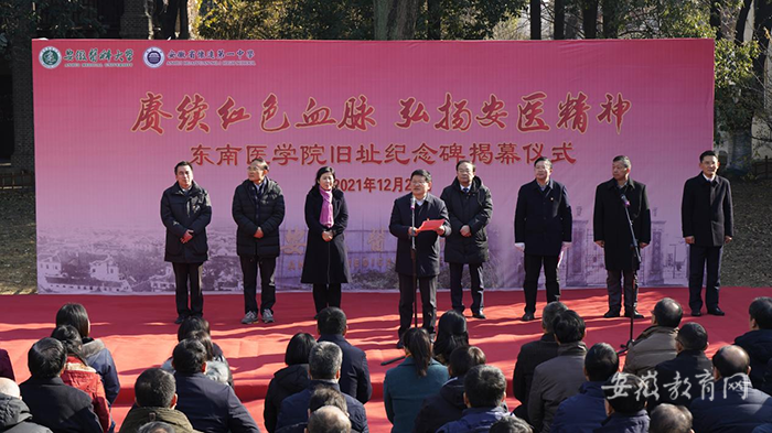 “内迁安徽72年来,一代代安医人继承老东南人的志向,秉承好学力行、造就良医的校训精神,前赴后继,肩负起守护安徽人民生命安全和身体健康的重任,以弘毅担当、精医报国、康民济世的安医精神,推动学校在不同历史时期取得一次次历史性跨越,为安徽医学教育和卫生健康事业发展作出了突出贡献。”顾家山满怀深情地说。