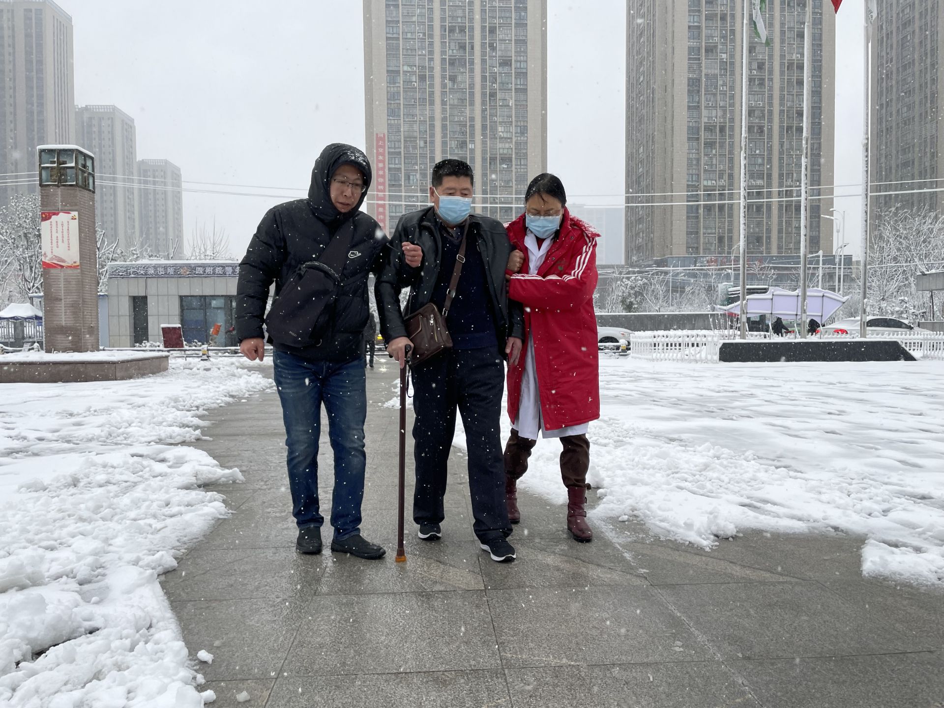 “大爷,您走路慢点,我们来扶着您”医务人员的一个暖心举动,也让患者感受到了严寒天气里的别样温暖。(吴晓珍 付艳)