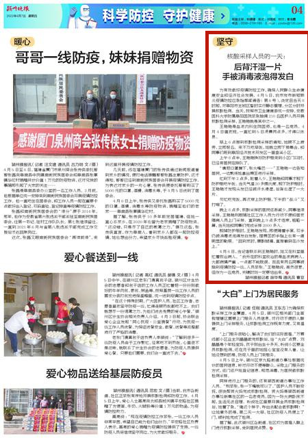 4月6日,当记者联系到王艳艳时,她又在科室里忙着救治病人。“我所在的科室收治的是血液病病人,大都病情严重,一点都不能耽误。而且有两名同事被抽到疫情防控一线,人员紧张。”王艳艳说,虽然很累,但作为一名党员,关键时刻一定要站出来。
