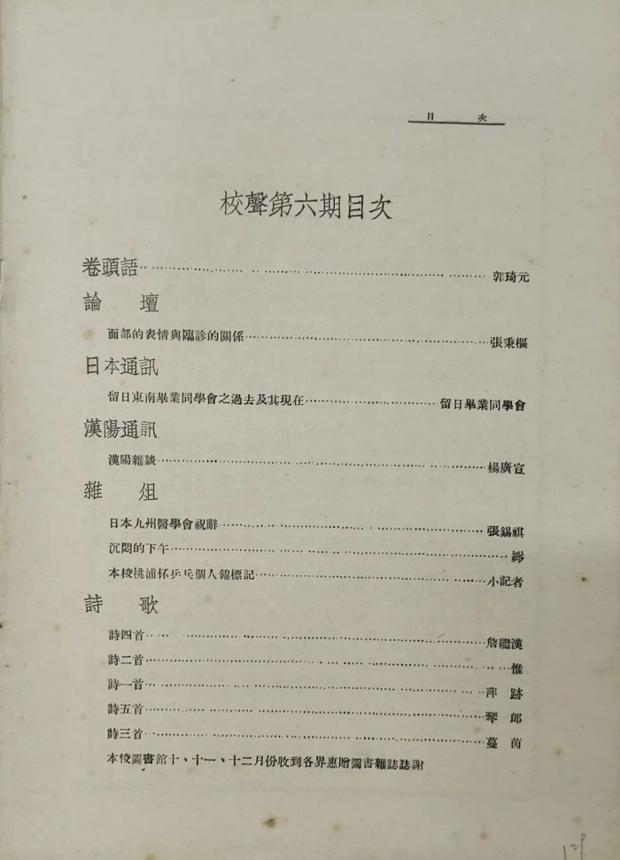 在五本《校声》中,1935年6月出版的第四期比较特别,它是东南医学院成立九周年的纪念特刊。虽然当时正是抗日战争期间,但纪念特刊还是处处洋溢着纪念的气氛。