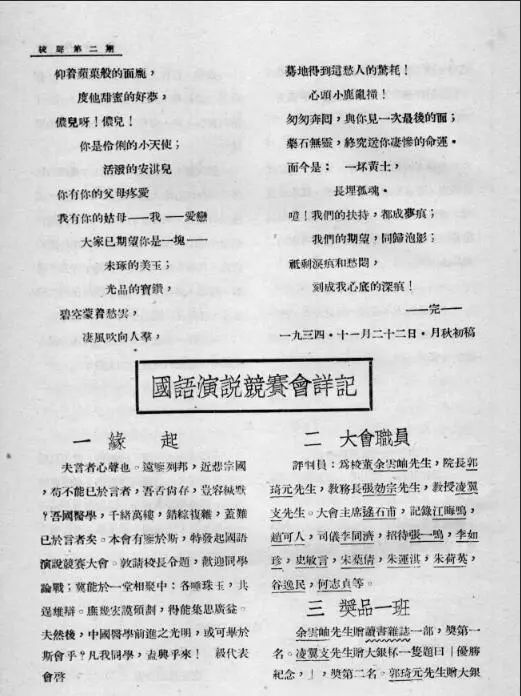 除此之外,《校声》中还记录了当时东南医学院举办的一些重要活动,以和校友们分享。第二期中就详细记录了由级代表会组织的“演说竞赛大会”。