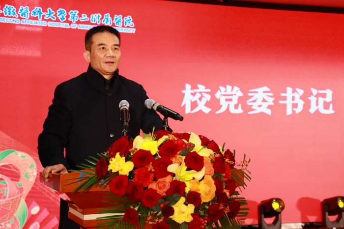王琦代表学校党委向受到荣誉表彰的集体和个人表示祝贺,对一年来辛勤工作的全院教职医护员工致以崇高的敬意和新春的问候,充分肯定了二附院过去一年取得的发展成绩。他指出,在院党委领导班子的正确领导和全体教职工的共同努力下,2024年二附院发展硕果累累,学科建设取得新的进步,科研能力实现新的提升,人才柔性引进和自主培育达成新的突破,医院党建引领作用更加凸显;医院突出社会责任,公益文化温暖人心,社区紧密型城市医疗集团建设成果斐然。