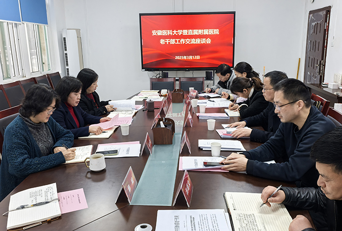 学校离退休人员工作处及第一附属医院(含北区)、第二附属医院、附属巢湖医院等在肥直属附院老干部工作部门分管领导及负责人参加座谈会。(离退休教职工党委)