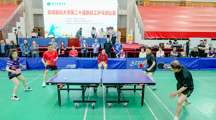 徐朝阳指出,乒乓球作为国球,在我校有着广泛的群众基础,一直是安医大校园文化的重要载体。为积极响应国家号召,全力营造健康文明、昂扬向上、全员参与的教职工文化氛围,进一步激发全体教职工团结奋斗的精气神,学校开展此次乒乓球比赛,为教职工们搭建了一个强身健体的平台,提供了增进友谊、促进交流的机会。希望参赛队员们赛出水平,彰显体育精神,以精湛的球技和文明的赛风展现安医大教职工的风采;赛出风格,凝聚团队力量,用每一次挥拍传递“友谊第一、比赛第二”的体育情怀;赛出境界,弘扬师德风范,将赛场上公平竞争、尊重对手、永不言败的精神,转化为立德树人、医者仁心的生动实践。