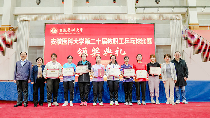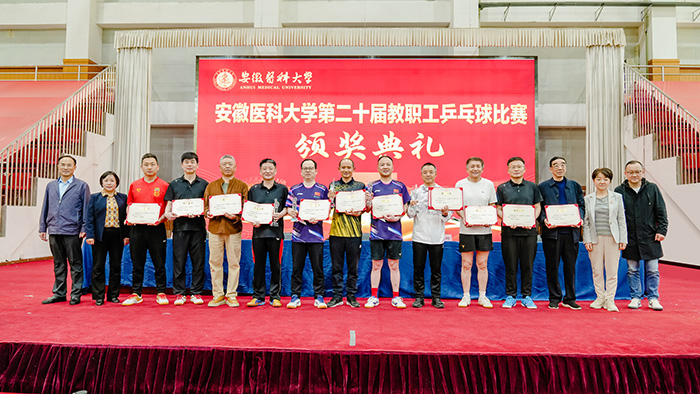 后勤保障部王珏、巢湖临床医学院(附属巢湖医院)刘众、离退休人员工作处夏毓敏获男子单打前三名;安徽省公共卫生临床中心陈妍妍、附属阜阳医院赵文、第二临床医学院(第二附属医院)叶惠娟获女子单打前三名;后勤保障部廖舟舟、程春丰,第一临床医学院(第一附属医院)高长林、陈象逊,医学人文学院马志军、陈桂平获男子双打前三名;第一临床医学院(第一附属医院)秦维玲、朱颖,机关党委李鸣、江洪燕,口腔医学院(附属口腔医院)赵春晖、罗菲菲获女子双打前三名;医学人文学院陈凯华、袁玎,机关党委周放、王润玲,第二临床医学院(第二附属医院)鞠康康、何水红获混合双打前三名。